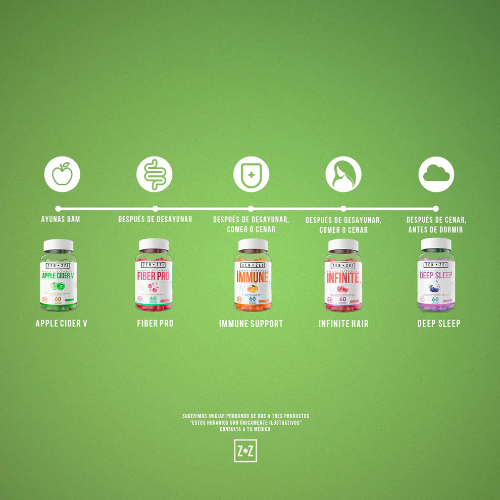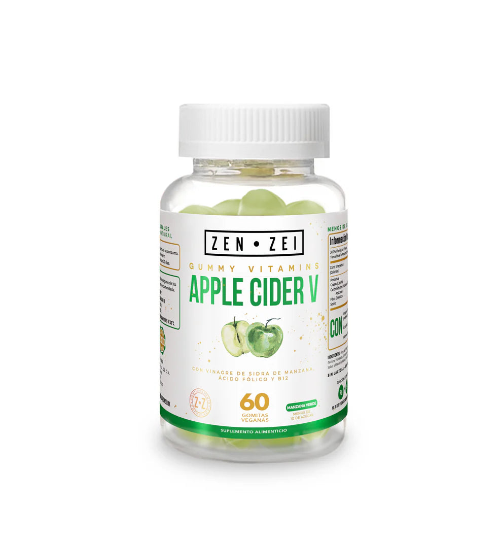 ZEN•ZEI Apple Cider V son gomitas formuladas con vinagre de sidra de manzana con “La Madre”, ácido fólico y vitamina B12, pensadas para integrarse fácilmente a tu rutina diaria de bienestar.